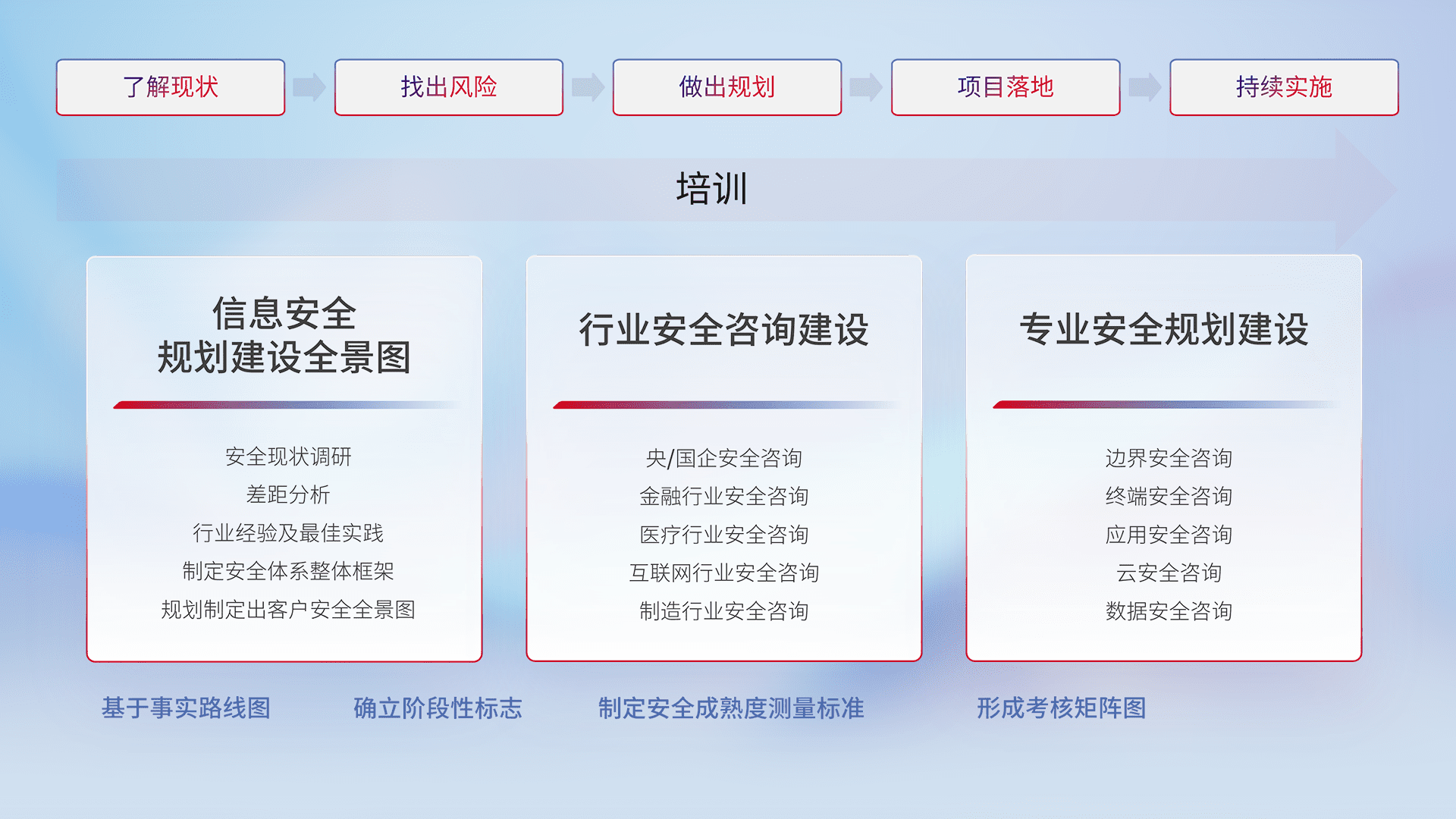 通过专业的法律咨询解读、、、、合规架构体现、、、、差异化解决方案、、测试实施支持等服务,,,为客户量身打造等保合规体系。。